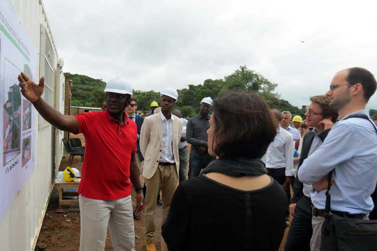 La délégation était menée par Mme Katharina Heiss, Directrice de KFW (Bureau de la Coopération Allemande au Développement/Coopération Financière Allemande) qui a appuyé SCS pour l'obtention d'un financement de la banque allemande DEG pour le developpement de l'usine de fabrication d'emballage en carton en cours de construction sur le site de Kamalé.